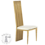 Estas son sillas de respaldo alto Stella doradas. La tarifa de alquiler indicada es la tarifa por el alquiler de un evento de 24 horas.